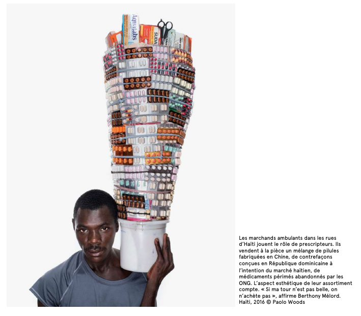 « Le déclic s’est produit à Haïti, lorsque nous travaillions sur notre projet « State » », se souvient le photographe. « En voyant les vendeurs ambulants de médicaments et leurs présentoirs qui ressemblent à des sculptures contemporaines. Nous touchions autant à la pauvreté, à la notion d’aide internationale, aux ONG, qu’à la mondialisation puisque beaucoup de ces produits viennent de Chine. C’était un point de départ extraordinaire. »